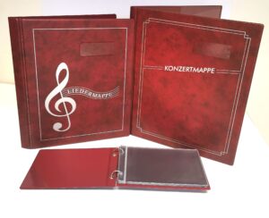 I nostri quaderni per concerti, canti e marce sono il risultato di un'accurata lavorazione artigianale e di una passione per la musica. Gli articoli sono realizzati direttamente in Carinzia, Austria. Usiamo solo i migliori materiali per garantire che le tue partiture siano presentate e protette adeguatamente. Le cartelle sono disponibili in diverse varianti e colori per soddisfare le tue esigenze individuali.